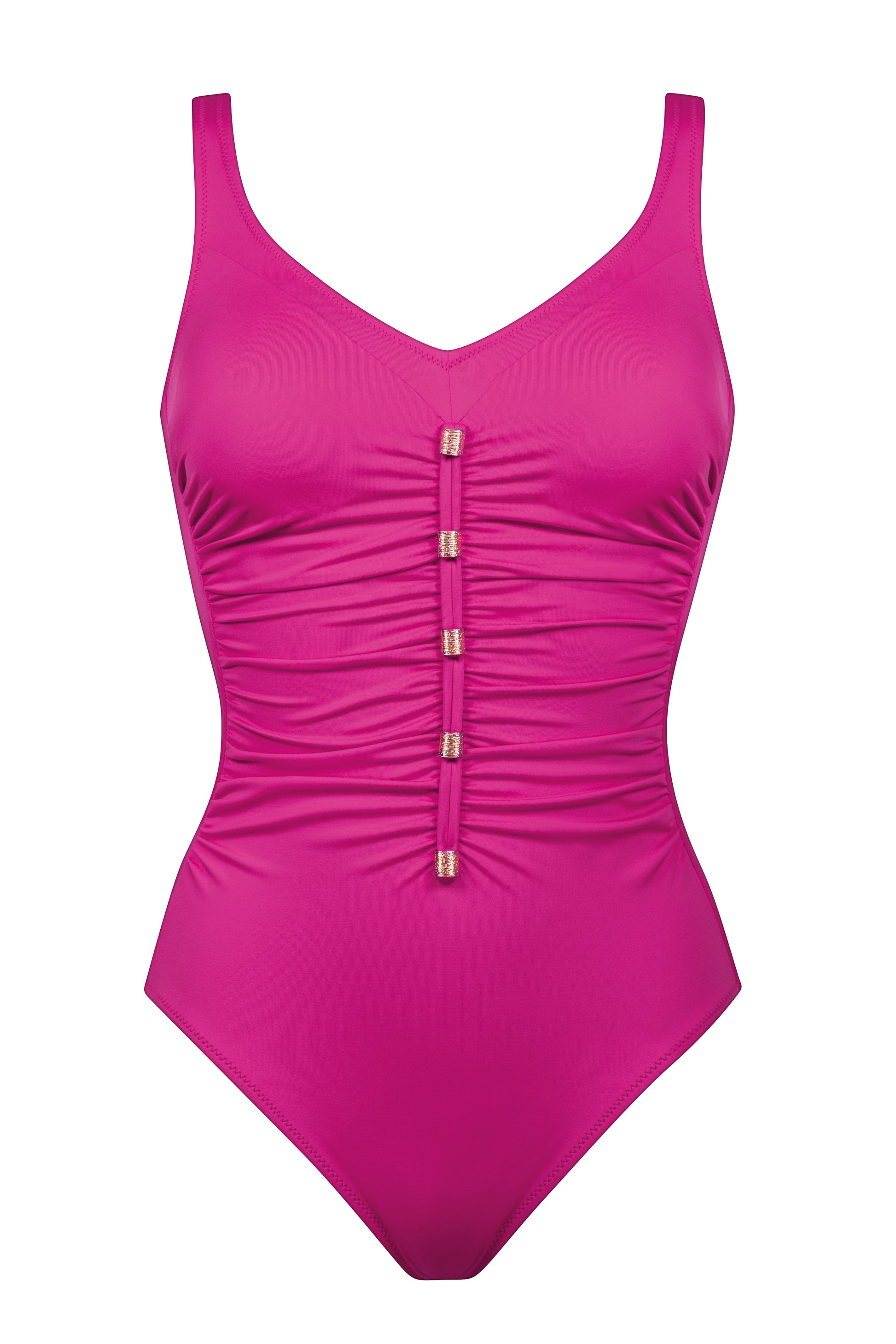 Bañador reductor con copa y sin aro. Este bañador cuenta con un fruncido de la tela en la parte del abdomen haciendo que nuestro ojo no pueda enfocar fácilmente y disimulando el abdomen ;-) Finalmente, los tejidos usados en este bañador cuentan con una sujeción y compresión adicionales para aumentar el efecto REDUCTOR. Luce tipazo con este modelo de Charmline.