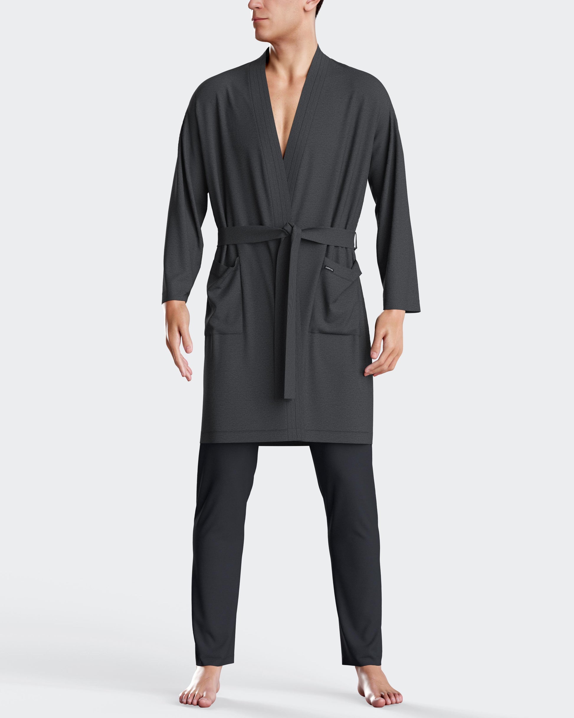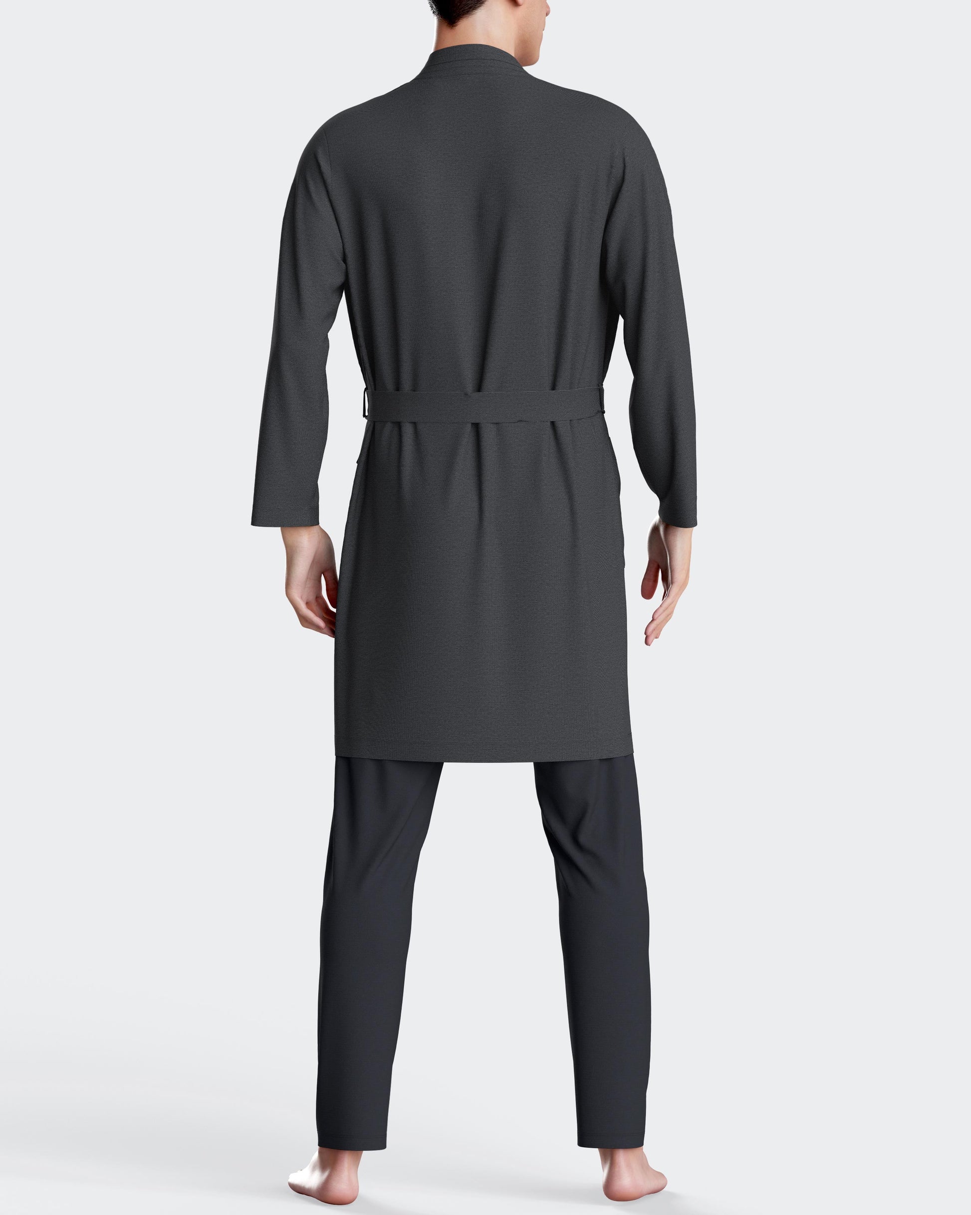 Bata térmica larga para hombre con textura jacquard. Cómoda y elegante, esta bata cuenta con prácticos bolsillos frontales, cinturón desmontable y un acabado sofisticado en un tejido cálido y suave de algodón y poliéster. Ideal para los días fríos.
