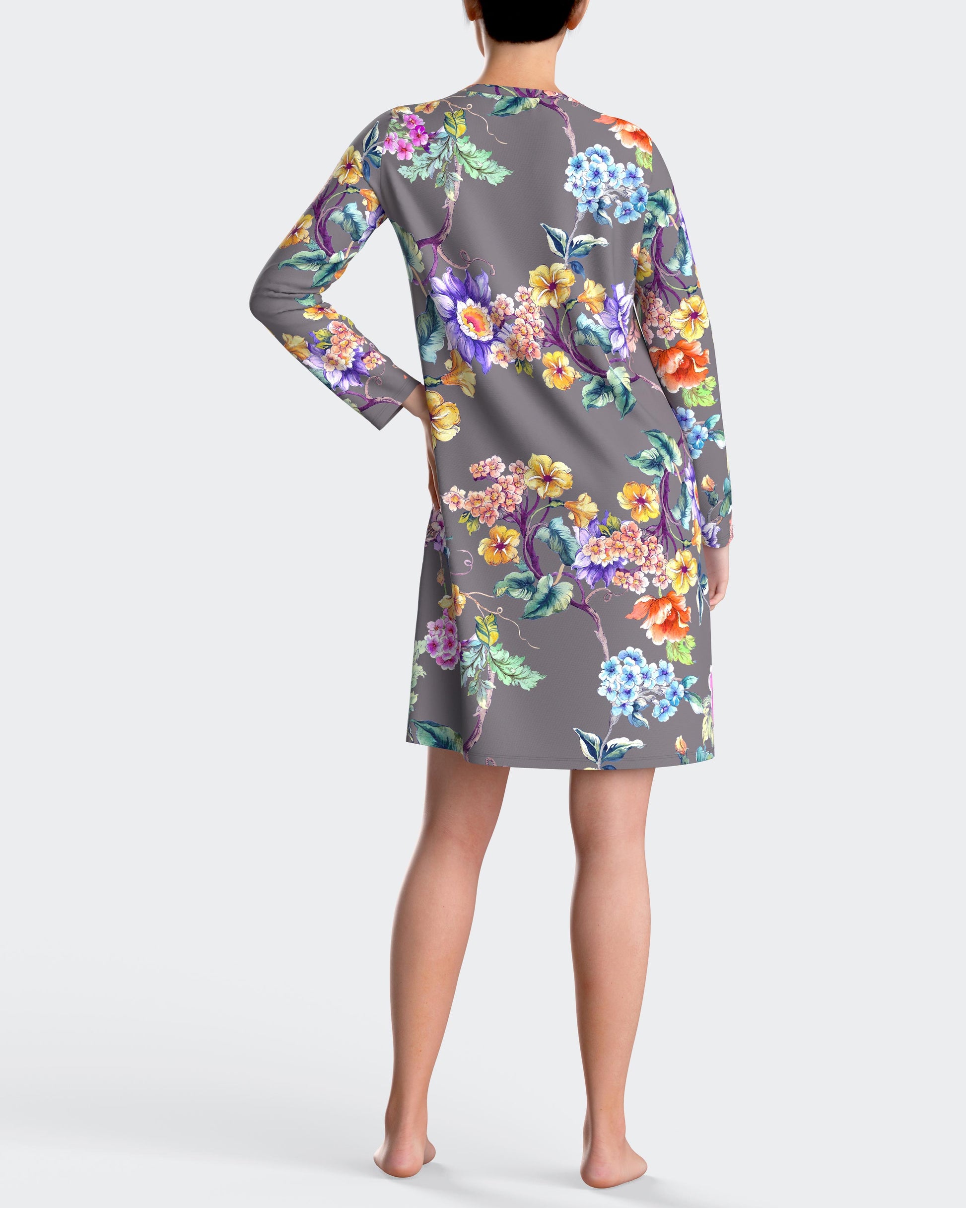Camisón cepillado con estampado de inspiración oriental. Confeccionado con fibra TENCEL™ Modal, reconocida por su suavidad natural y su tacto sedoso sobre la piel.